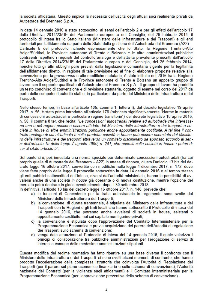 Con un annetto di ritardo ma la risposta della Provincia all’interrogazione presentata dal M5S sulla costituzione della società Brenner Corridor Spa si è alfine palesata. Il testo, che trovate sotto, è molto lungo e tecnico ma in sostanza il succo è soprattutto che si conferma il tramonto dell’ipotesi della società pubblica e al tempo stesso la volontà di tenersi i privati nella compagine societaria. Del resto si sa, far utili con un monopolio naturale come un’autostrada è DIFFICILISSIMO, per cui meglio garantire a certi potenti amici una fettina della torta tenendoseli buoni, che poi magari un domani, quando si presenterà l’occasione buona, si finirà col privatizzare del tutto e potrebbero anche essere riconoscenti. Fare gli interessi esclusivi del pubblico da parte di chi gestisce la cosa pubblica del resto sarebbe chiedere troppo… Insomma, per sintetizzare brutalmente, in Provincia di Trento la questione della gestione di Autostrade non ha insegnato proprio niente!