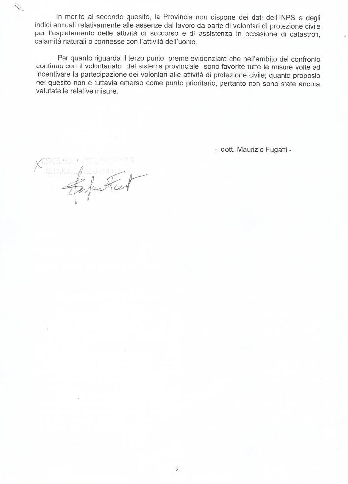 Si tratta di una risposta grave, perché sottovaluta un problema reale. Specie coi tempi che corrono, se una persona per aiutare il prossimo deve rischiare di perderci prima ci pensa non una ma dieci volte e magari rinuncia a fare volontariato. In un settore importante come la protezione del territorio ciò comporta il rischio di un indebolimento generalizzato del sistema. Per questo, la poszione assunta dall’amministrazione provinciale sul tema degli incentivi non è solo sbagliata ma in prospettiva anche (e soprattutto) pericolosa!