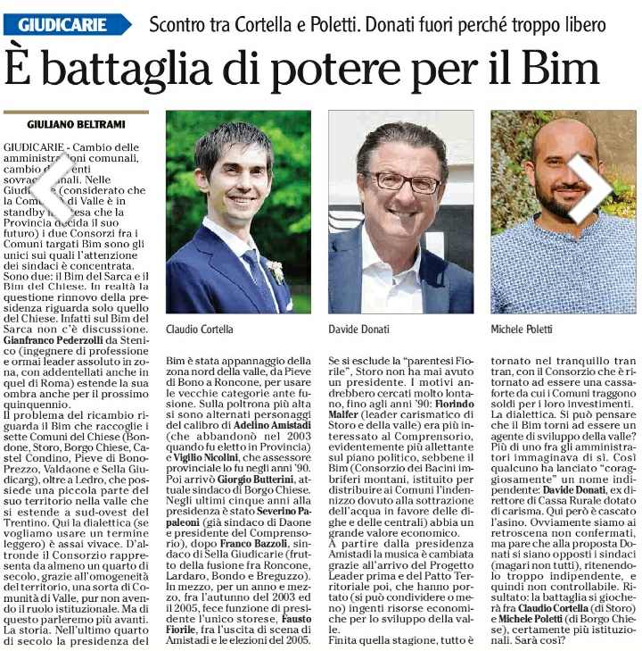 09 ottobre 2020 – Intervista al giornale L’Adige sulla vicenda della nomina del Presidente del BIM del Chiese richiamata nella cronaca del 7 ottobre
