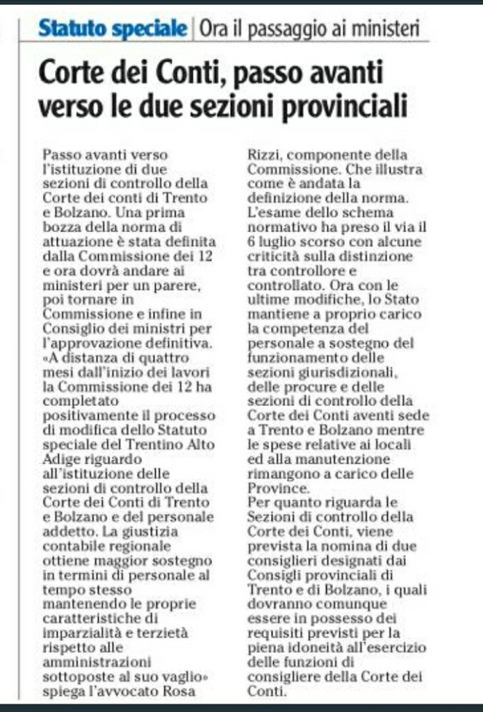 A distanza di 4 mesi dall’inizio dei lavori la Commissione dei 12 ha completato positivamente il processo di modifica dello Statuto speciale del Trentino Alto Adige riguardo all’istituzione delle sezioni di controllo della Corte dei Conti di Trento e Bolzano e del personale addetto. La giustizia contabile regionale ottiene maggior sostegno in termini di personale al tempo stesso mantenendo le proprie caratteristiche di imparzialità e terzietà rispetto alle amministrazioni sottoposte al suo vaglio.