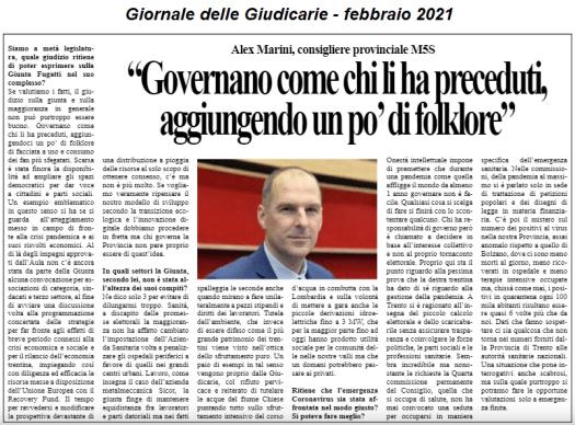 Di seguito le risposte che ho fornito ad una recente intervista pubblicata sul numero di febbraio 2021 del Giornale delle Giudicarie riguardo alla situazione politica trentina al traguardo di metà legislatura.