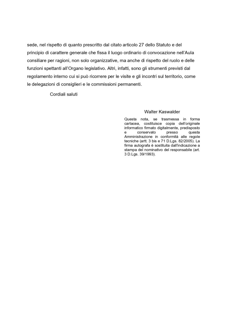 - se, anche in assenza di una puntuale modifica del regolamento consiliare, intenda convocare una sessione straordinaria del Consiglio provinciale da svolgersi presso uno dei comuni ladini menzionati nell’articolo 48 dello Statuto di autonomia o nei territori mocheni o cimbri per discutere disegni di legge e altri atti inerenti la tutela delle minoranze linguistiche;