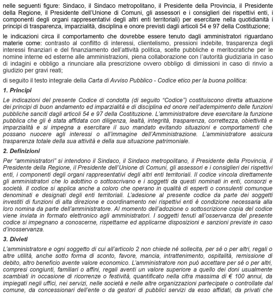 Abbiamo pensato di utilizzare il modello predisposto dall’associazione Avviso Pubblico come base di partenza per la discussione consiliare accorpando il documento integrale alla Proposta di mozione depositata il 26 maggio 2021 in Consiglio regionale: