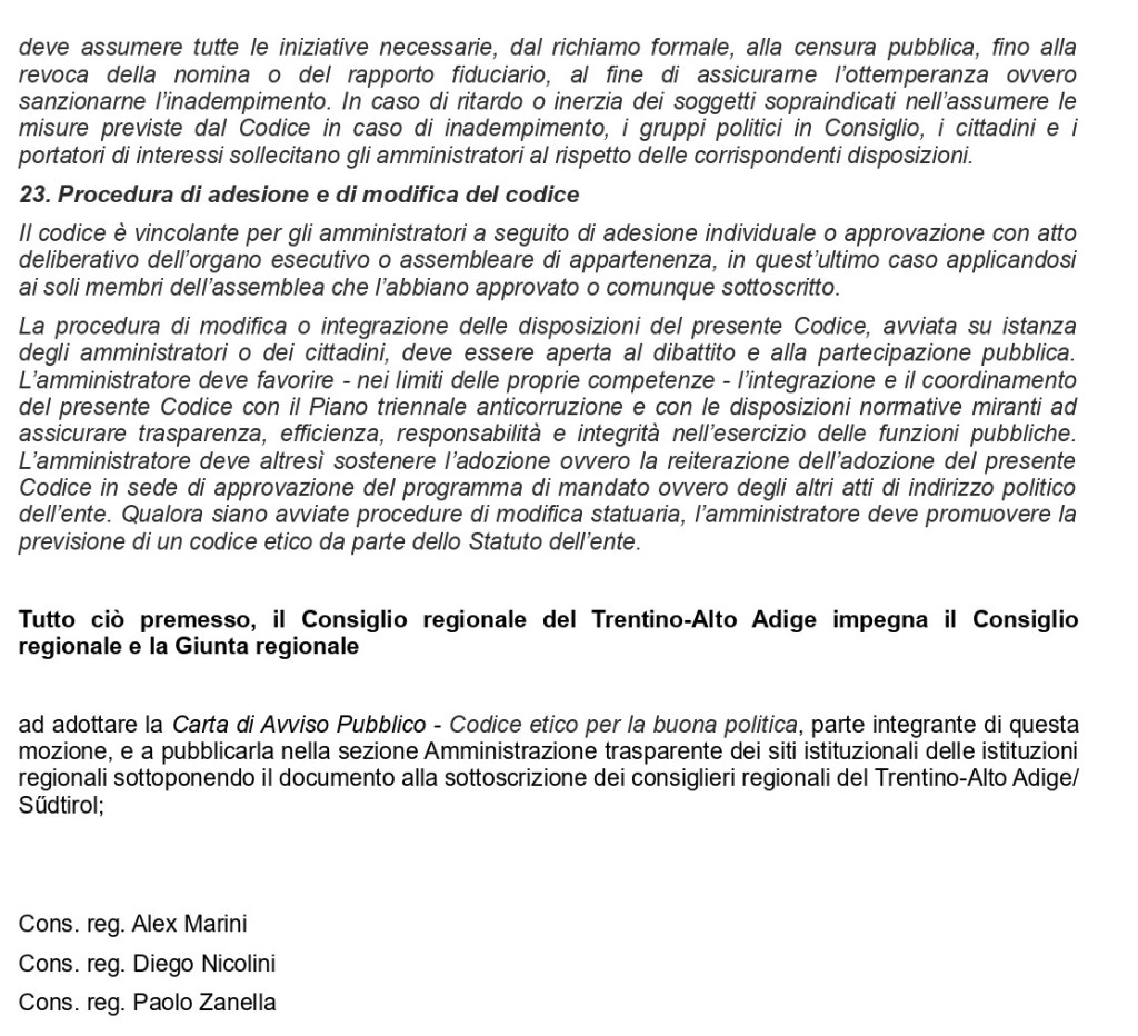2 Replies to “Una carta etica per i componenti del Consiglio regionale del Trentino Alto-Adige/Südtirol: il M5S presentata mozione regionale”