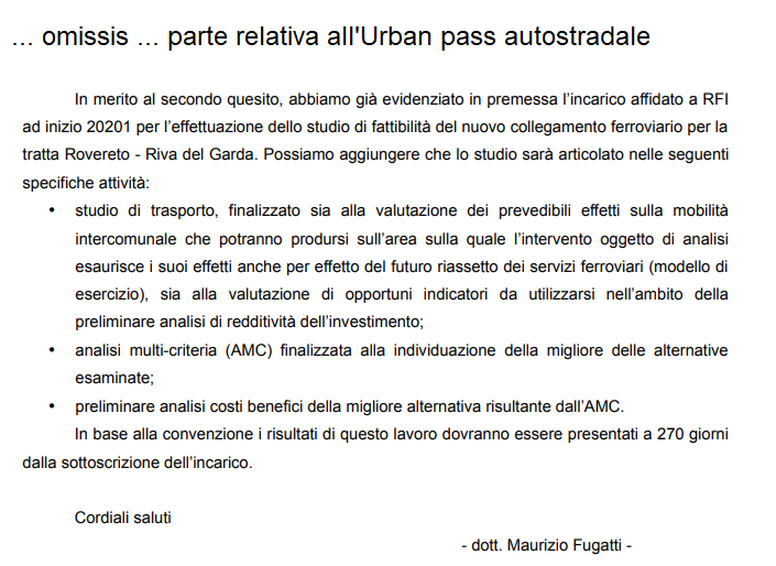 2 Replies to “La ferrovia Rovereto-Riva del Garda: terminato lo studio di fattibilità affidato a RFI la Provincia attuerà 2 processi partecipativi”