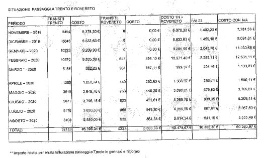 A inizio 2020 la società Autostrada del Brennero Spa aveva lanciato il progetto Urban Pass, definito sulla base di un accordo con la Provincia autonoma di Trento, prevedendo la possibilità da parte degli utenti di percorrere gratuitamente le tratte cittadine di Trento e Rovereto. C’è voluto più di un anno ma la Provincia ha reso pubblici i dati dei transiti e dei relativi costi. I passaggi totali coperti da Urban Pass da novembre 2019 a agosto 2020 sono stati 52.119 su Trento e 5.227 su Rovereto per una spesa totale a carico delle casse provinciali di 60.363,97 euro. Non è molto, anche se c’è da tener presente che da marzo 2020 in poi la pandemia ha sicuramente ridotto il numero dei transiti. Sia come sia, ci pare un buon risultato e pensiamo che la sperimentazione meriti di venir approfondita, Urban Pass infatti permette di decongestionare il traffico stradale sulla tangenziale Rovereto-Trento, rendendola più scorrevole e percorribile ai pendolari con un costo che appare del tutto sostenibile.