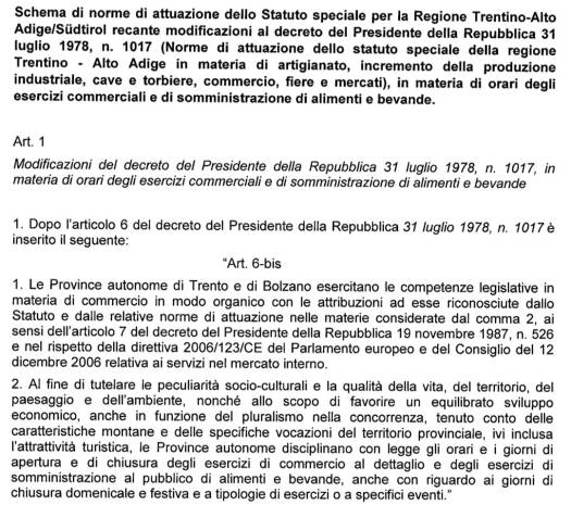 Questo sempre che la maggioranza creda davvero nella regolamentazione del commercio durante i fine settimana e la promulgazione di una legge provinciale chiaramente incostituzionale non fosse solo uno specchietto per le allodole per raccattare qualche voto in più.