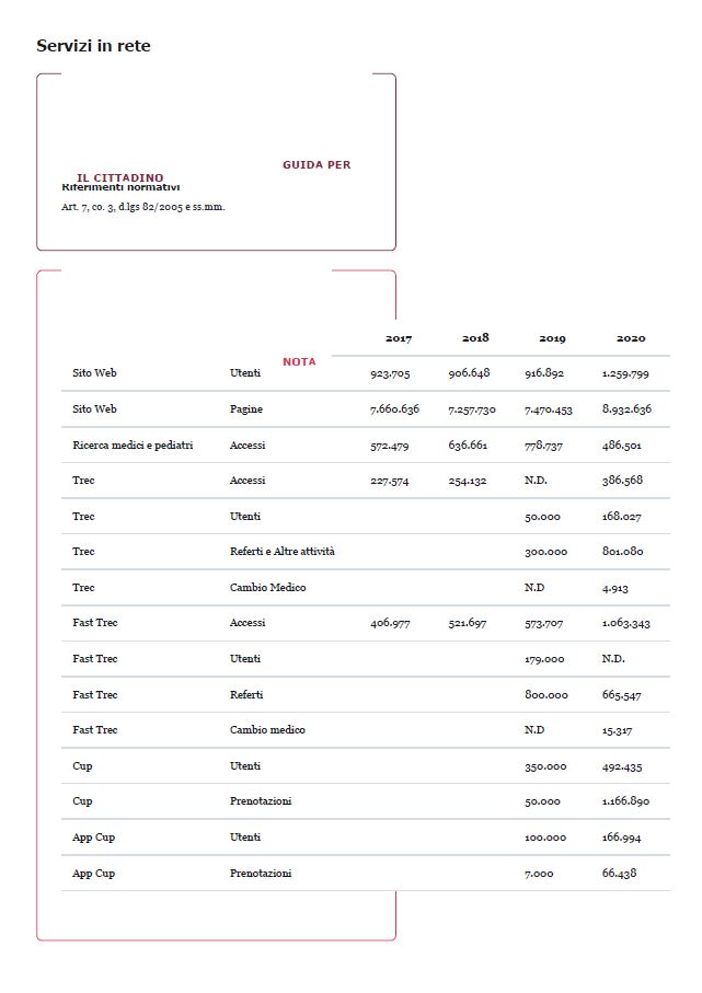 Segue l’elenco degli accessi ai servizi in rete dell’APSS nel periodo 2017-2020