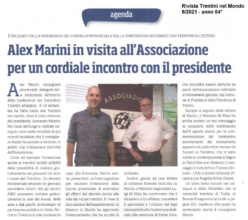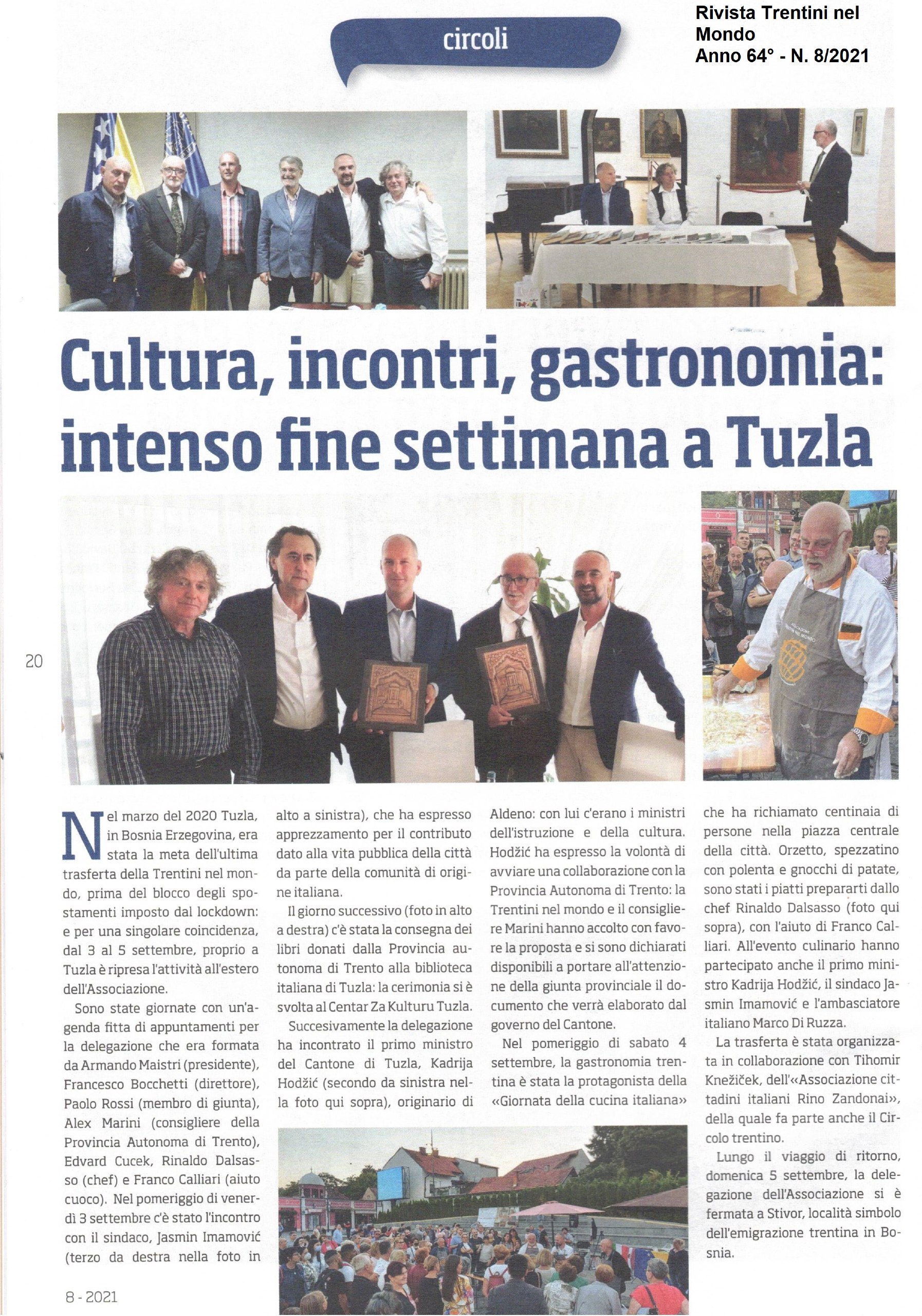 La trasferta di inizio settembre a Tuzla in Bosnia Erzegovina sta portando buoni frutti (servizio su rivista Trentini nel Mondo e incontro con il presidente Armando Maistri). A inizio novembre il presidente del Cantone di Tuzla, Kadrija Hodžic, che ha radici ad Aldeno, è venuto a visitarci. Oltre al momento istituzionale ci sono però stati anche impegni concreti a prendere in considerazione la proposta di memorandum di collaborazione tra Trentino e Cantone di Tuzla (ne ha parlato anche la Voce del Nord Est).