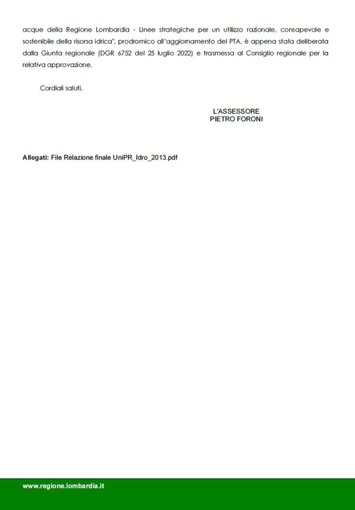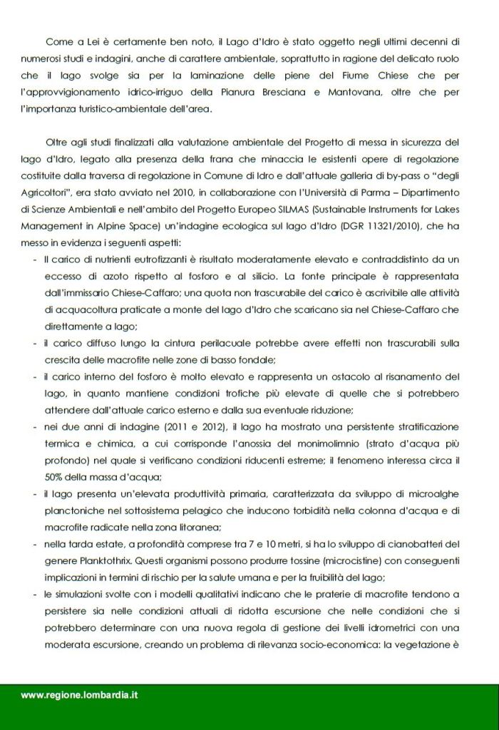 Qui la “RELAZIONE FINALE – RICERCA SUL RISANAMENTO DEL LAGO D’IDRO” a cui fa riferimento Fioroni nella sua risposta.