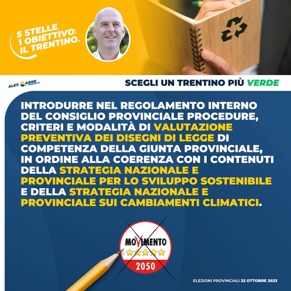 Segue una carrellata di schede sulla parte “Per un Trentino più Verde” del programma M5S: