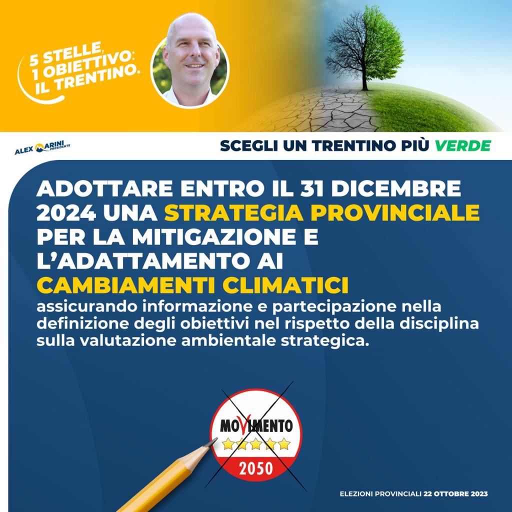Dall’analisi e dalle valutazioni dei programmi elettorali dei candidati presidenti effettuata da un gruppo di esperti indipendenti coordinati dalla Rete Climatica Trentina il M5S primeggia solitario nell’ambito delle politiche ambientali e di mitigazione e adattamento ai cambiamenti climatici. Se poi consideriamo che quello che abbiamo inserito nel programma non è altro che una minima parte del lavoro svolto negli ultimi 5 anni in tema di cambiamenti climatici, dobbiamo andarne veramente fieri!