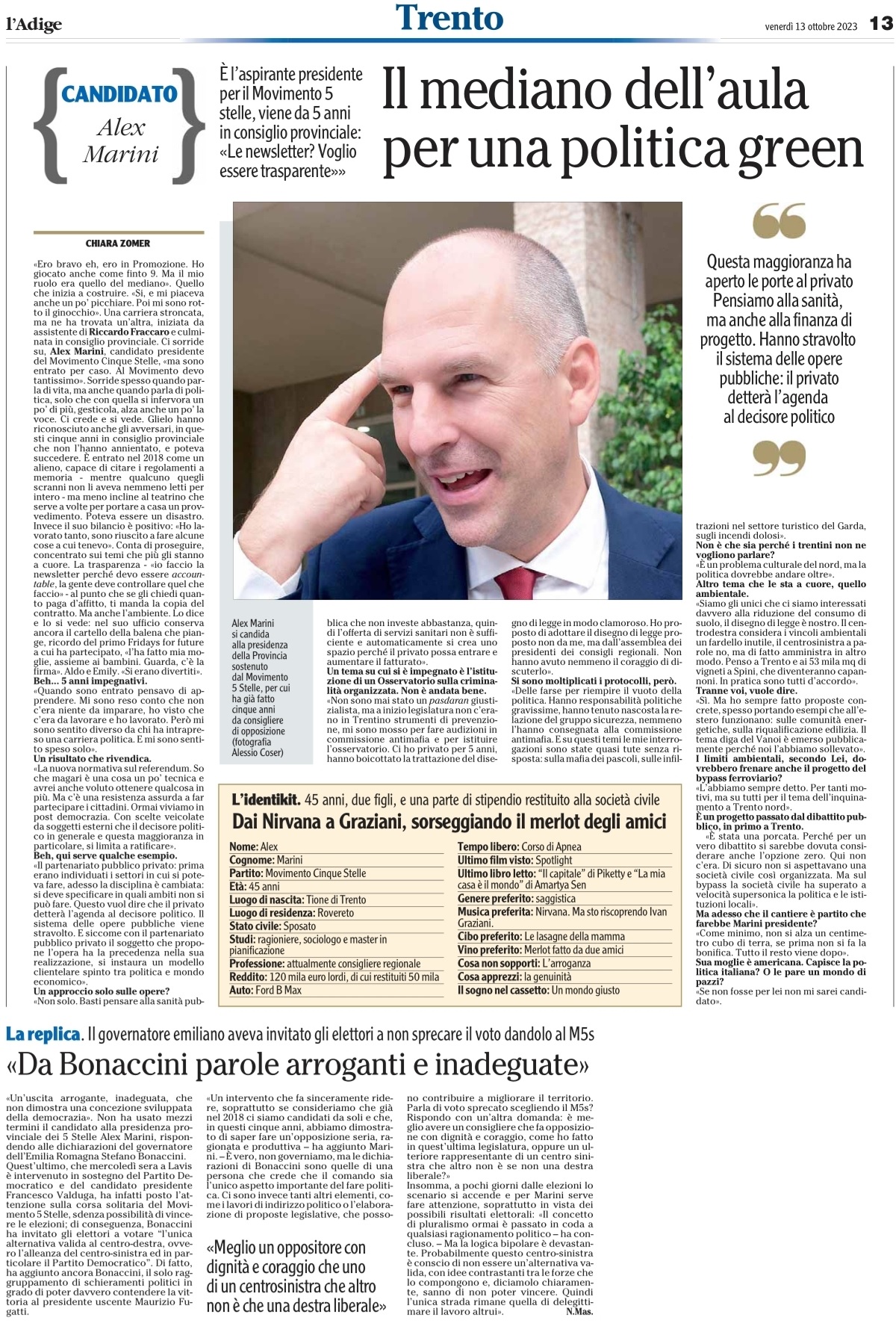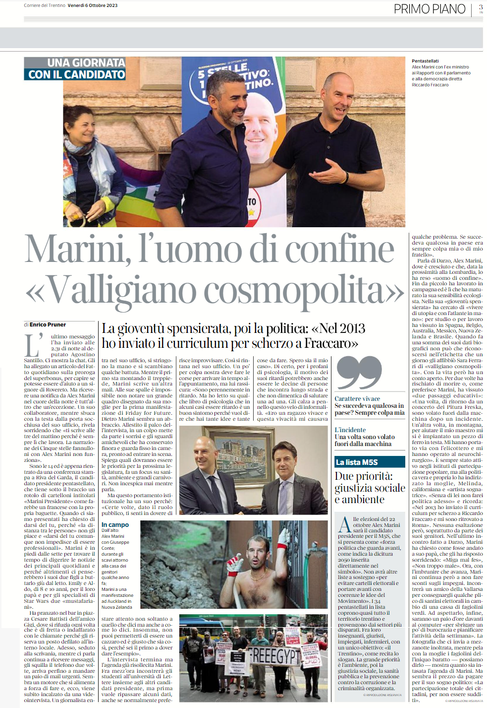 La campagna elettorale è sempre un periodo intenso anche dal punto di vista mediatico: assieme ai nostri candidati, ho preso parte a diversi confronti e interviste. Segnalo le interviste esclusive al candidato presidente, che sono state pubblicate sul Corriere del Trentino a cura di Enrico Pruner, su L’Adige a cura di Chiara Zomer, su Il T quotidiano a cura di Gabriele Stanga (identikit) e su Trento Today a cura di Stefano Pagliarini.