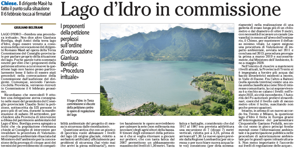L’Adige – 10 gennaio 2025 – Lago d’Idro in commissione – di Giuliano Beltrami