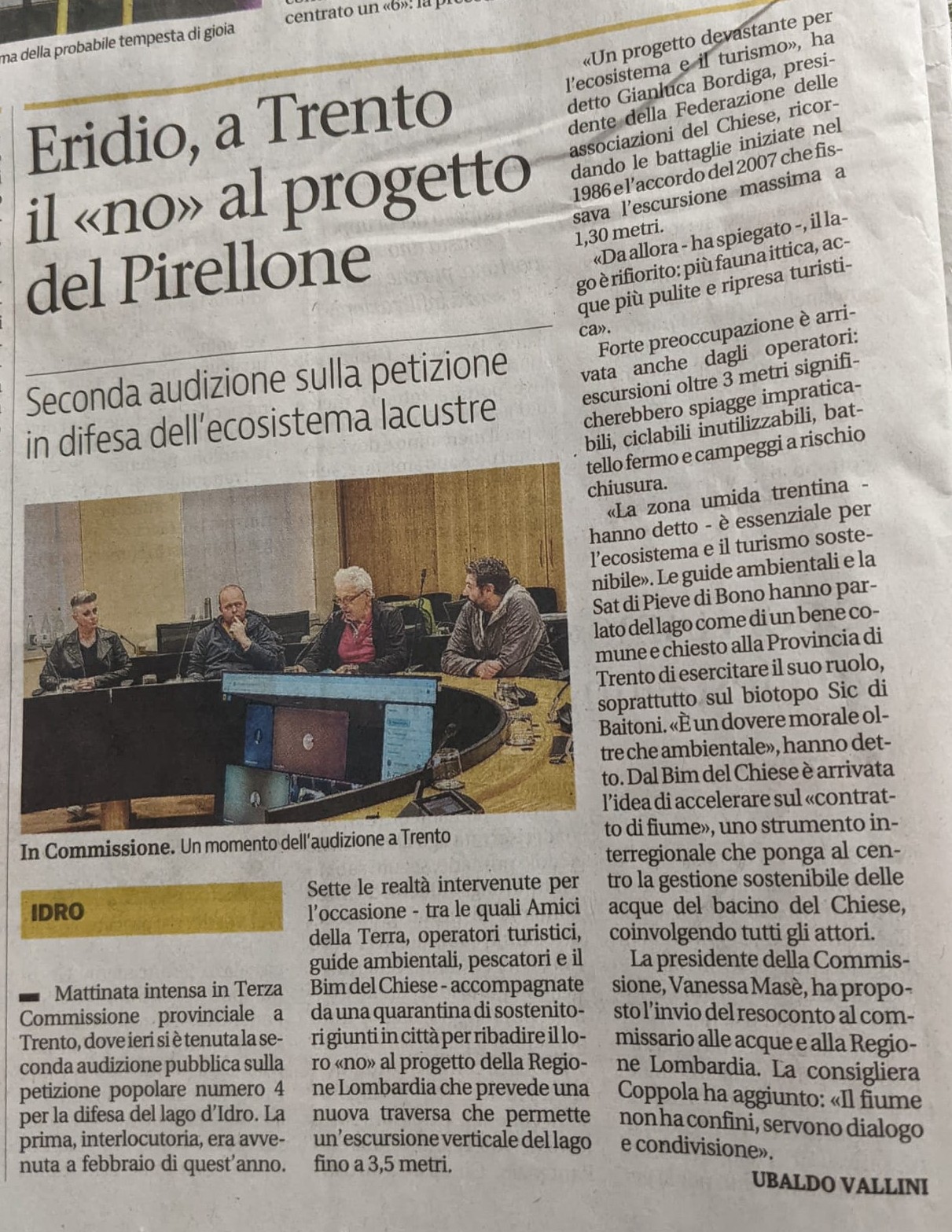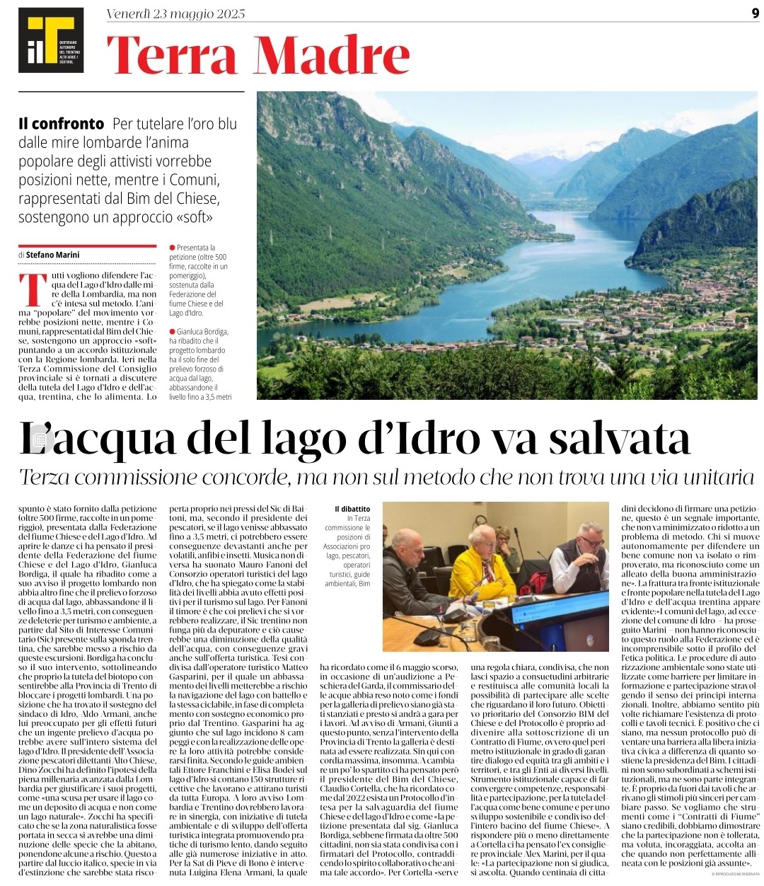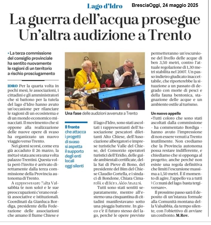 22 maggio 2025 – Prima tornata di audizioni sulla petizione petizione trentina (documenti integrativi: Pescatori Alto Chiese, BIM del Chiese) – Rassegna: Il T + BresciaOggi + Il Giornale di Brescia