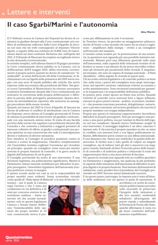 * Intervento pubblicato sul mensile di inchiesta Questo Trentino – aprile 2026