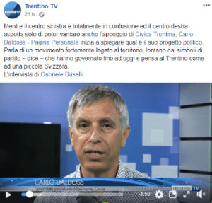 Dopo un silenzio durato 5 anni sul disegno di legge di iniziativa popolare in materia di democrazia diretta e l’atteggiamento pusillanime nei confronti delle sollecitazioni dell’associazione Più Democrazia in Trentino per rendere effettivi i diritti di partecipazione popolare previsti dall’ordinamento regionale dei comuni e dagli stessi statuti comunali fa specie sentire le parole di Carlo Daldoss su Trentino TV con cui esprime il desiderio di trasformare il Trentino in una piccola Svizzera. Continua a leggere “Democrazia Diretta: è arrivato il momento delle promesse a vuoto”